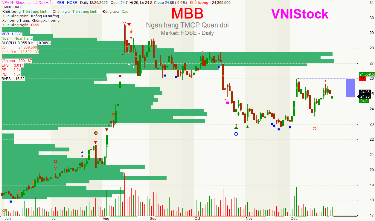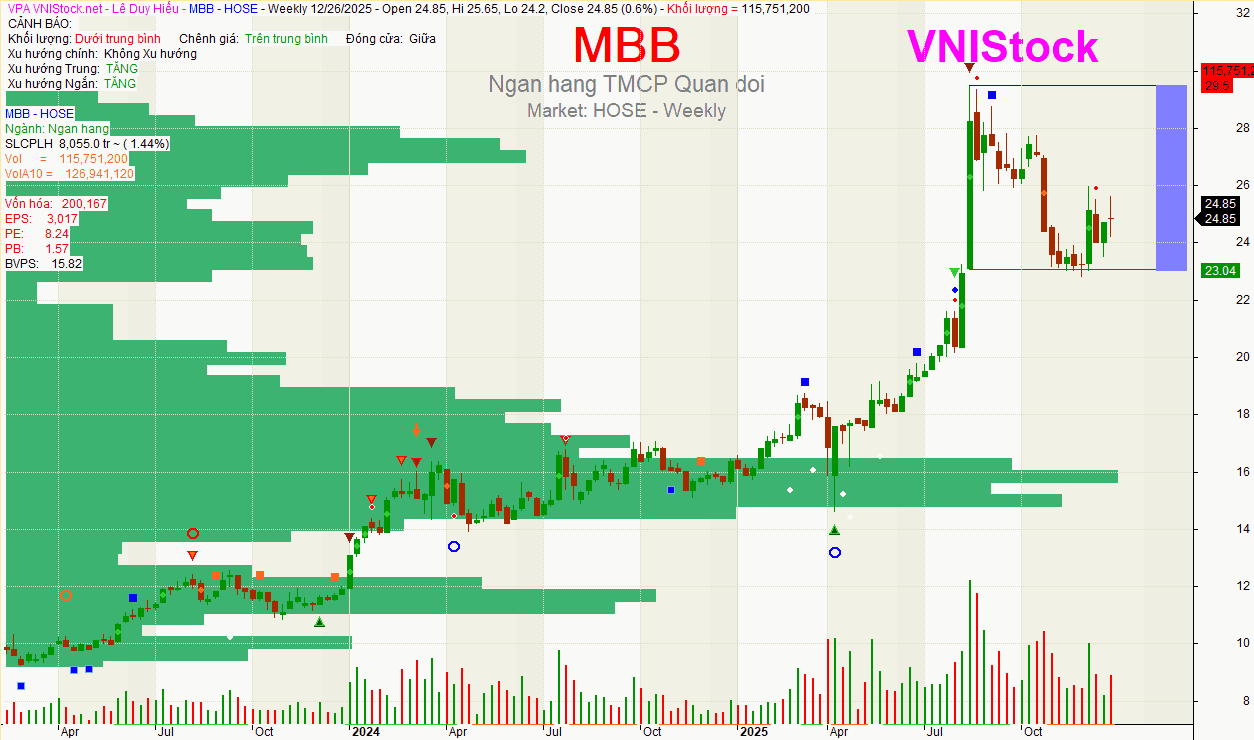 - Rủi ro chủ yếu đến từ biến động vĩ mô và chu kỳ tín dụng, nhưng xu hướng hiện tại vẫn thuận lợi. Các nhịp điều chỉnh của thị trường sẽ là cơ hội để tích lũy MBB cho tầm nhìn trung – dài hạn.