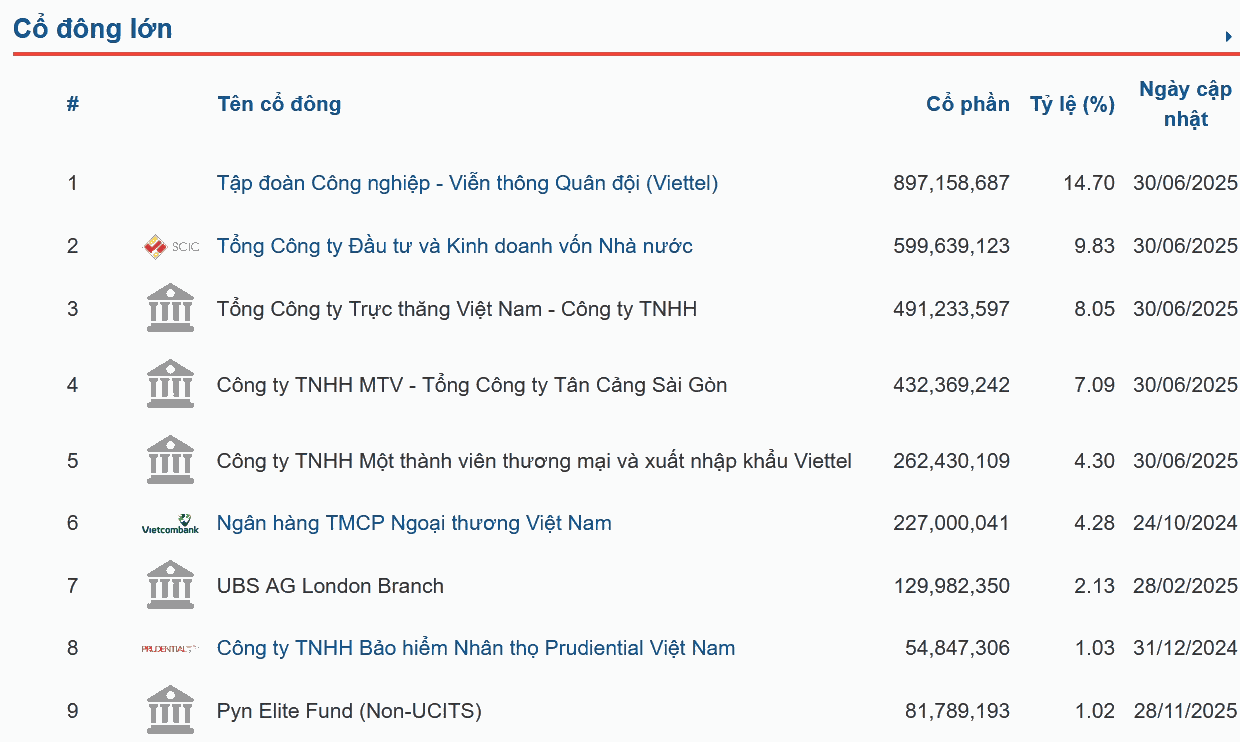 - Tập đoàn Công nghiệp – Viễn thông Quân đội (Viettel): Cổ đông lớn chiến lược. Sự hiện diện của Viettel giúp MBB có lợi thế về hạ tầng công nghệ, dữ liệu lớn (Big Data) để phát triển ngân hàng số và thanh toán không dùng tiền mặt.