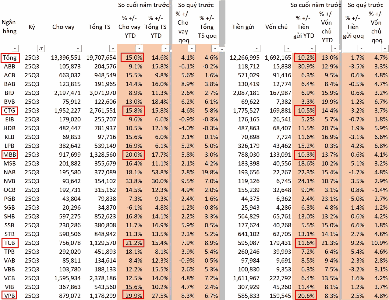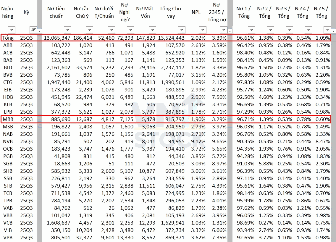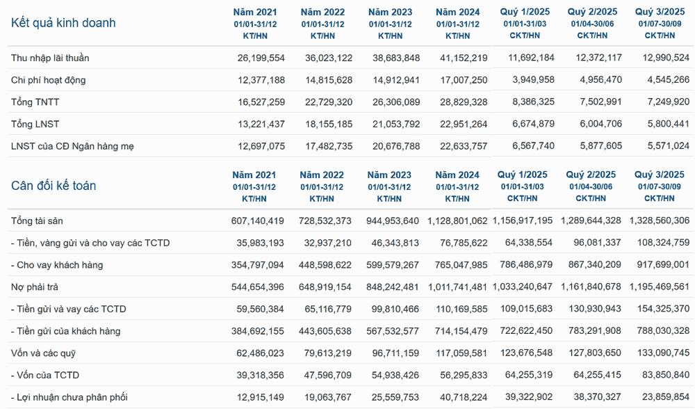 - Nợ xấu quý 3/2025 là 1.9% – cao hơn so với năm ngoái nhưng vẫn thấp hơn so với bình quân trong ngành.