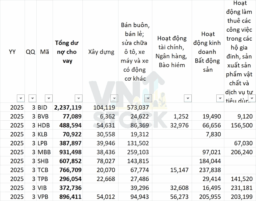 - Ngành ngân hàng đang hồi phục khi tín dụng tăng trở lại 13–15%, lãi suất thấp hỗ trợ biên lợi nhuận, đặc biệt nhóm quốc doanh hưởng lợi mạnh từ đầu tư công và nâng hạng thị trường.